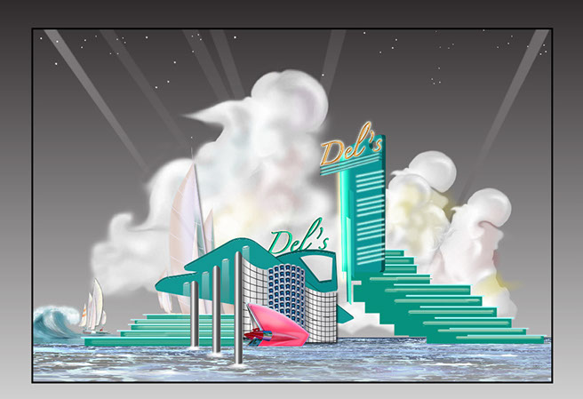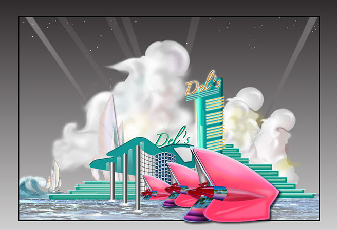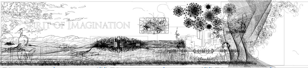 The mural was designed in Illustrator cs6 at about 36" wide but since vector illustration was employed I was able to resize up to 36' feet by 6' feet. The image was printed in 4 foot sections and applied to the wall.